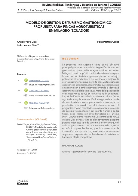 Modelo de gestión de turismo gastronómico: propuesta para fincas agroturísticas en Milagro (Ecuador)