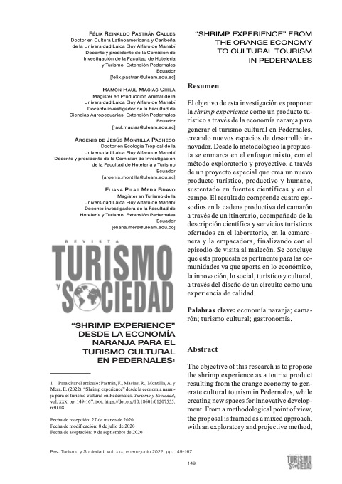 “Shrimp experience” desde la economía naranja para el turismo cultural en Pedernales